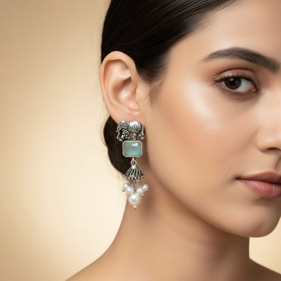 Ladies Pearl Oxidized Earrings are a stunning blend of traditional charm and contemporary elegance. Crafted from high-quality metal with an oxidized silver finish, these earrings are adorned with delicate pearls that add a touch of grace and sophistication. Perfect for ethnic wear, festive occasions, or casual outings, they bring a unique bohemian vibe to any ensemble. Lightweight and skin-friendly, they offer comfortable wear throughout the day. Available in various intricate designs, Ladies Pearl Oxidized Earrings are an ideal choice for women who love timeless accessories with a modern twist. A beautiful addition to any jewelry collection.