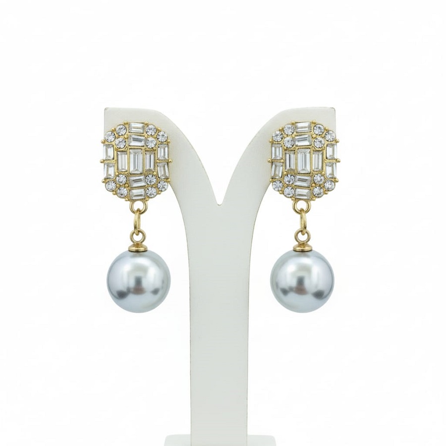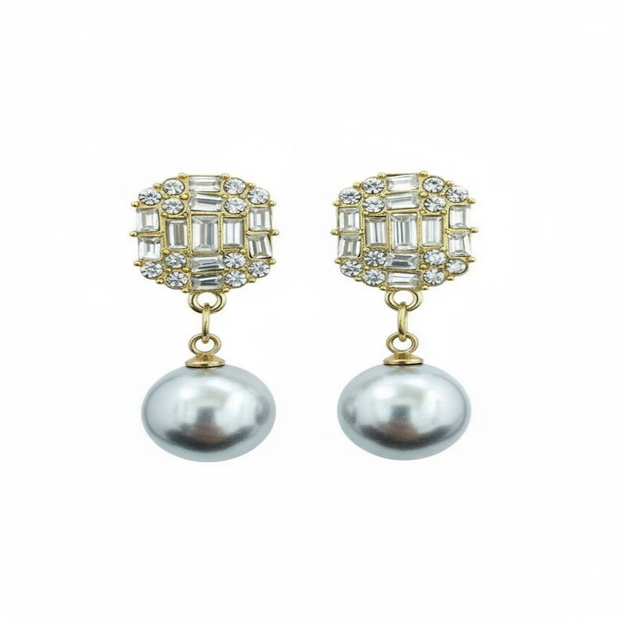 “Dazzle and delight with our exquisite pearl drop earrings, featuring shimmering cubic zirconia baguettes and brilliant round-cut stones. These gold-tone statement earrings showcase a sophisticated square top with a captivating grey pearl accent, perfect for adding a touch of timeless elegance to any outfit. Ideal for special occasions, evening wear, or as a thoughtful gift. Discover your next favorite fashion accessory that blends luxury jewelry appeal with stunning craftsmanship.”